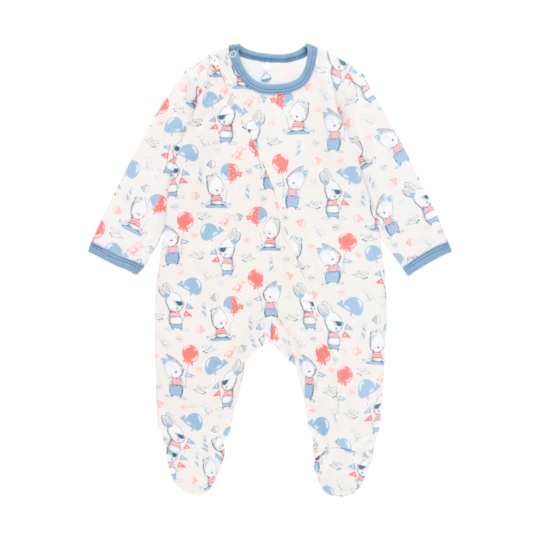 Pelele de punto con estampado de globos. Se cierra con cremallera y tiene topos antideslizantes en los pies.
