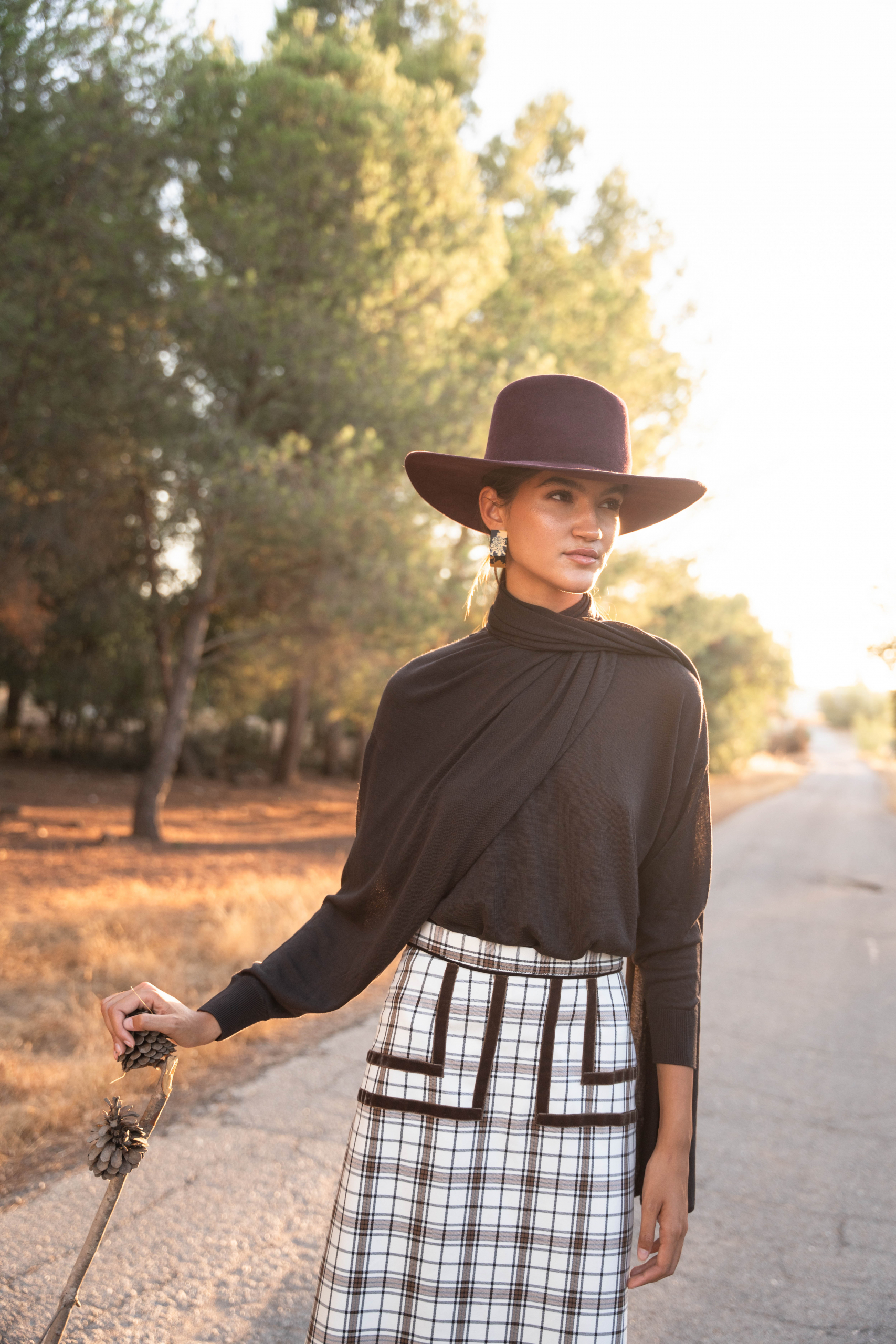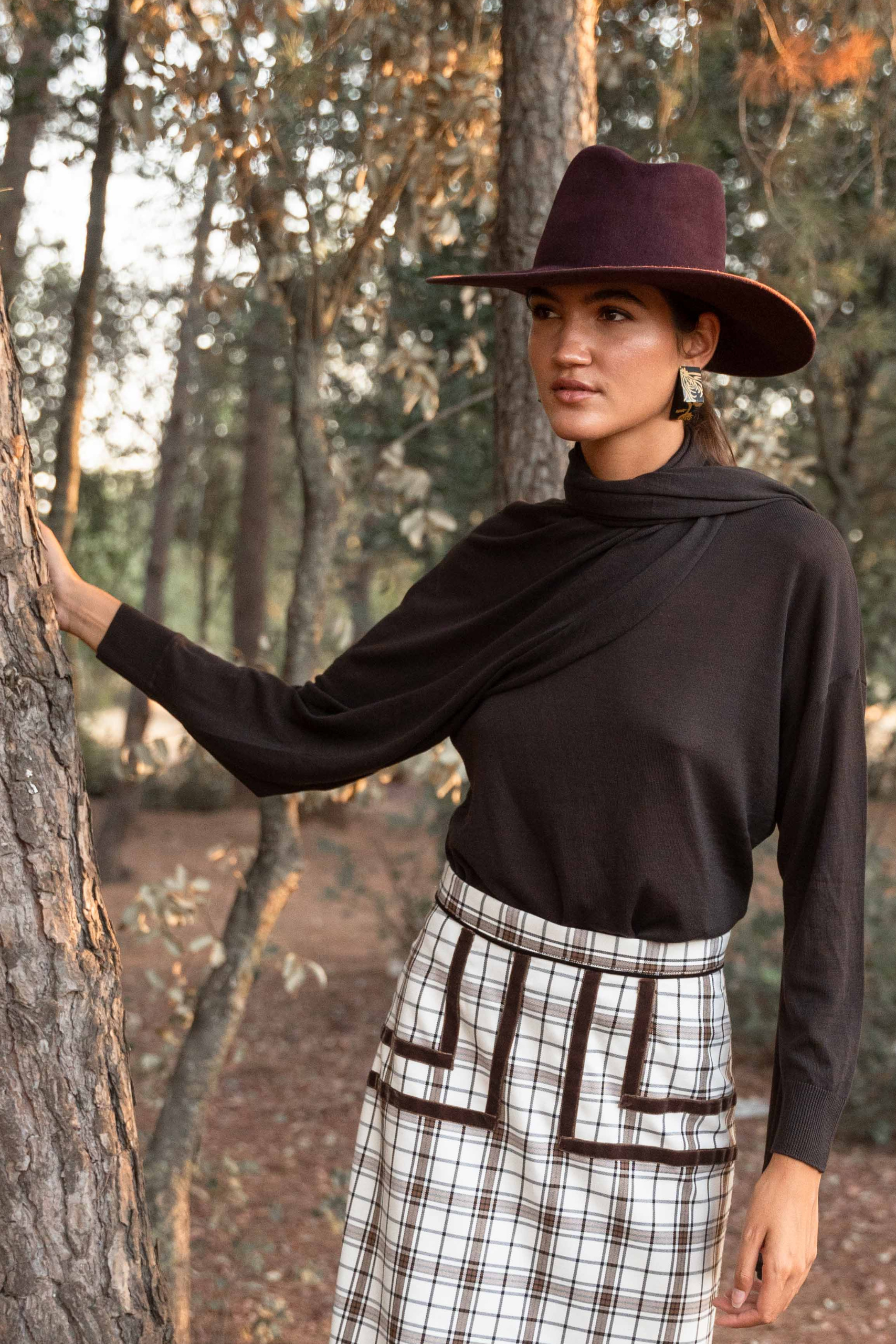 Pendiente triangular de madera, pintado a mano negro y dorado. Cierre tuerca. Miden 5 cm. Cuidados: No mojar, ni rociar con perfume.