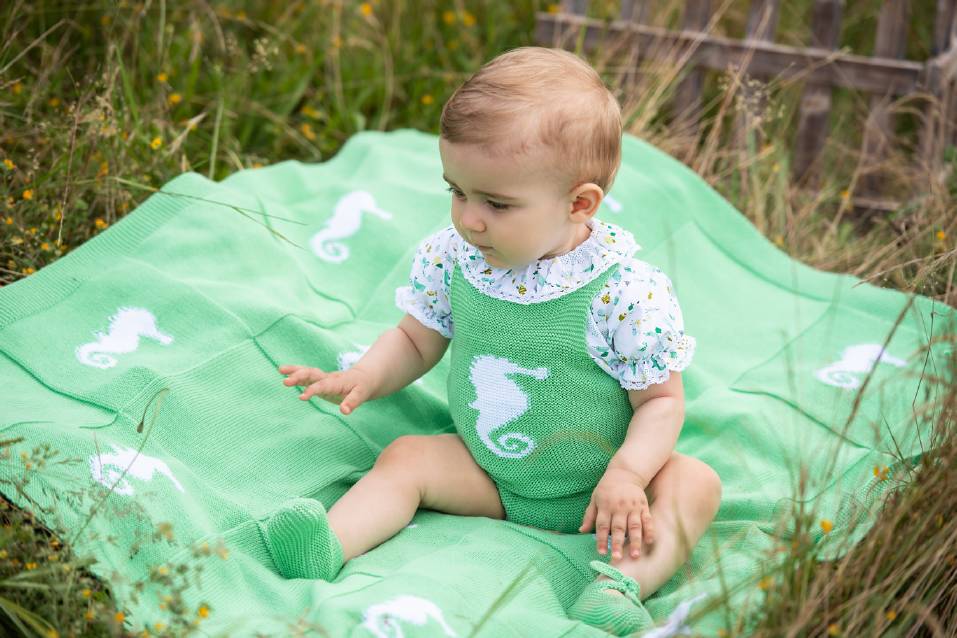 Peto de punto con dibujo de caballito de mar. No incluye blusa.