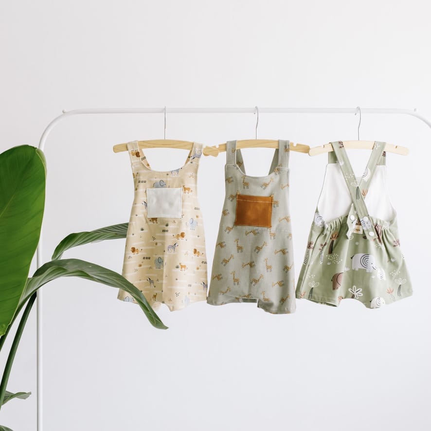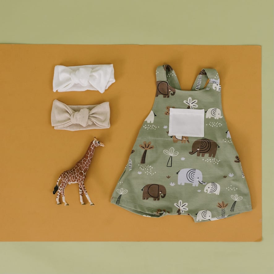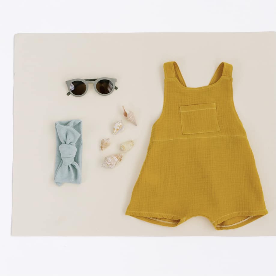- Todos los petos están confeccionados a mano con punto elástico (95% de algodón y 5% de elastán). Todos los tejidos tienen el certificado OEKO-TEX® Standard 100.