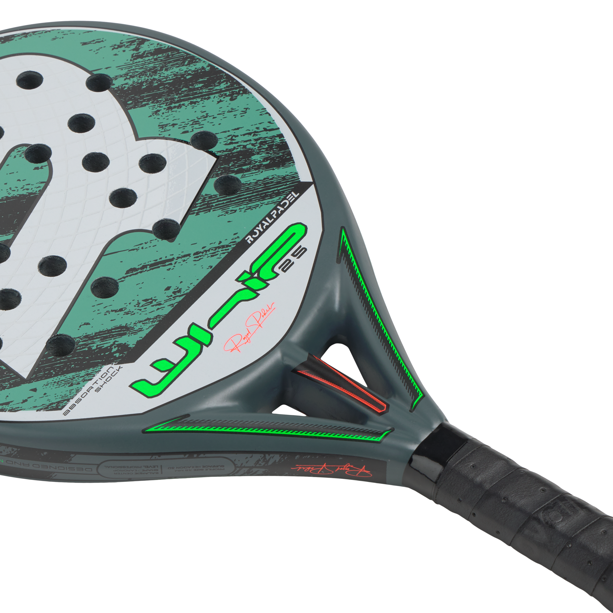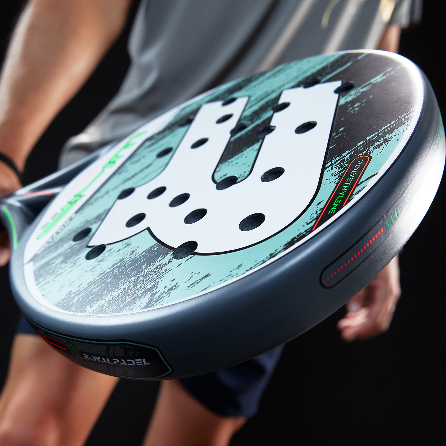 Continuamos apostando por la composición interior en Polietileno blando de alta recuperación y la tecnología Fibertech en las caras y marcos de la pala, que vienen reforzados con Carbono. Mantenemos la Whip Poly 2025 con un balance bajo y una forma redonda para que siga siendo esa pala con un control y una precisión exquisita que tanto la caracteriza. Para el modelo de esta presente temporada, se incorporan 2 novedades principales: En primer lugar, hemos rediseñado la disposición de los agujeros de la pala para mantener un amplio punto dulce y aumentar la durabilidad y manejabilidad de la pala. Por otro lado incorporamos la DMND Spin Rough, una superficie en relieve en forma de diamante diseñada para aumentar los efectos de tus golpes durante más tiempo.
