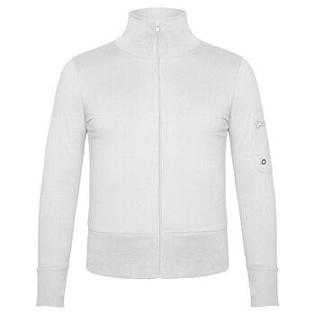Chaqueta casual de cuello alto con cremallera central al tono del tejido. Cuello, puños y cintura ancha de punto canalé.