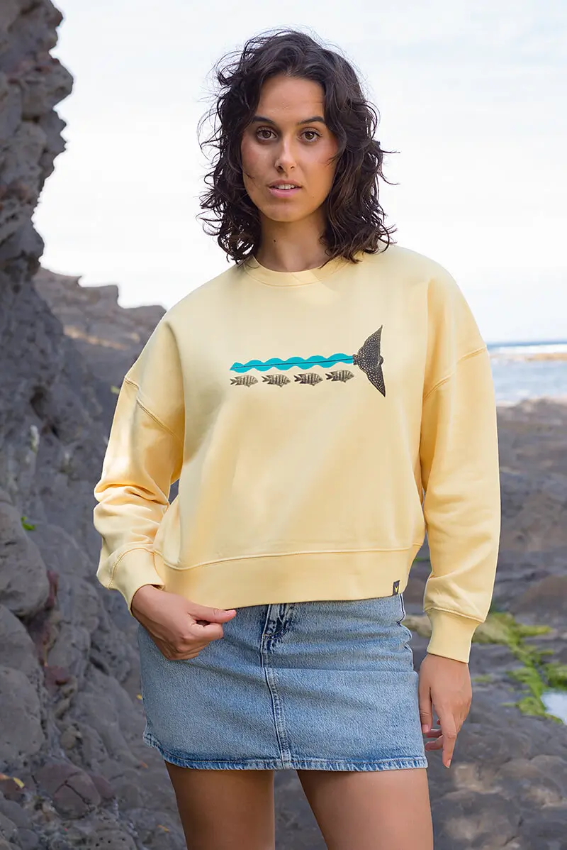 Sudadera mujer teja de 100% Algodón orgánico, hilado y peinado, realizada de forma sostenible y vegana, con diversos certificados que acreditan su producción respetuosa con el medio ambiente y los trabajadores.
