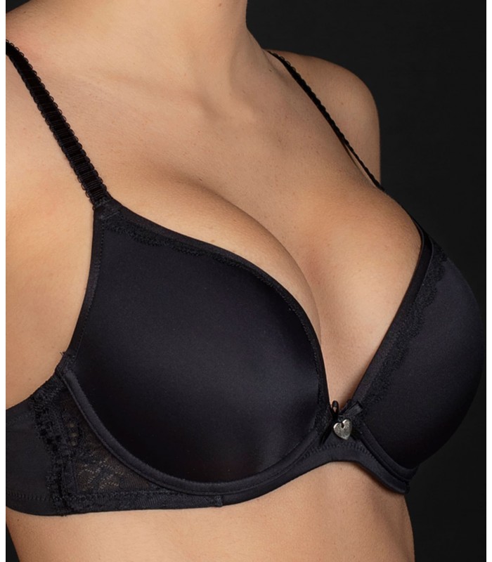 Sujetador con aro, tirantes y un push up con detalle decorativo en el  centro.