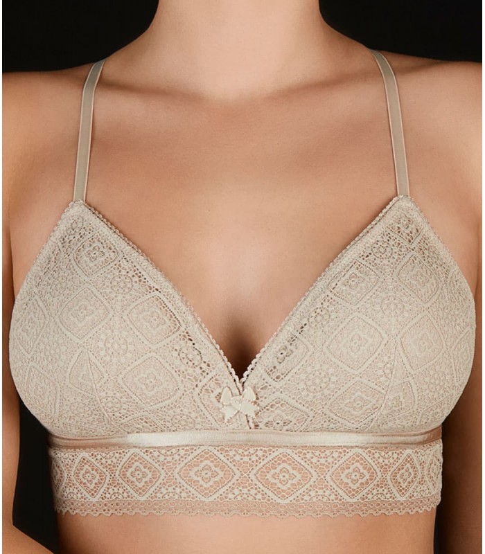 Sujetador sin aro, con relleno y tirantes.