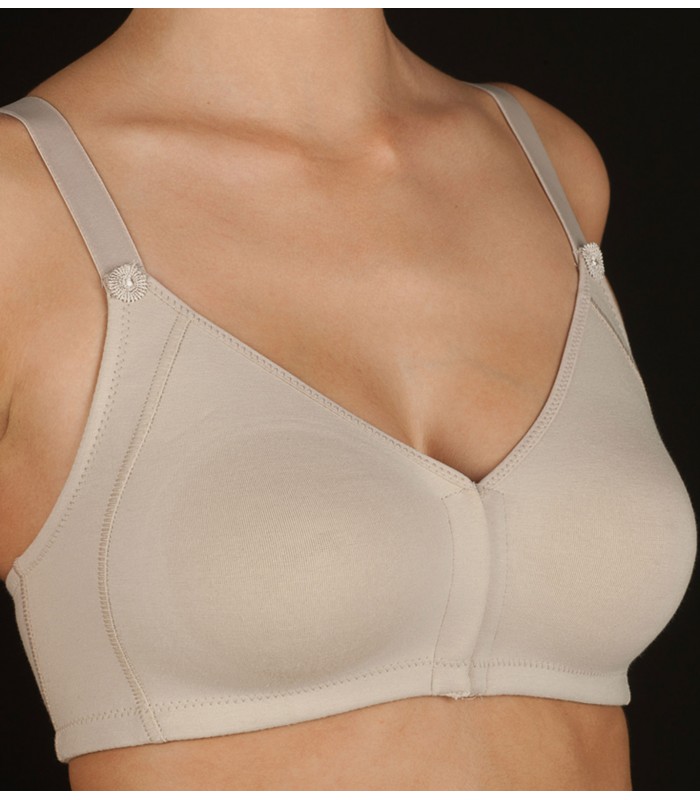 Sujetador de algodón sin aro, sin relleno, con tirantes y apertura delantera.