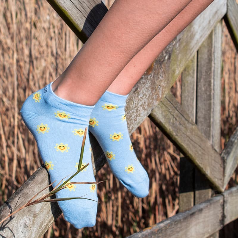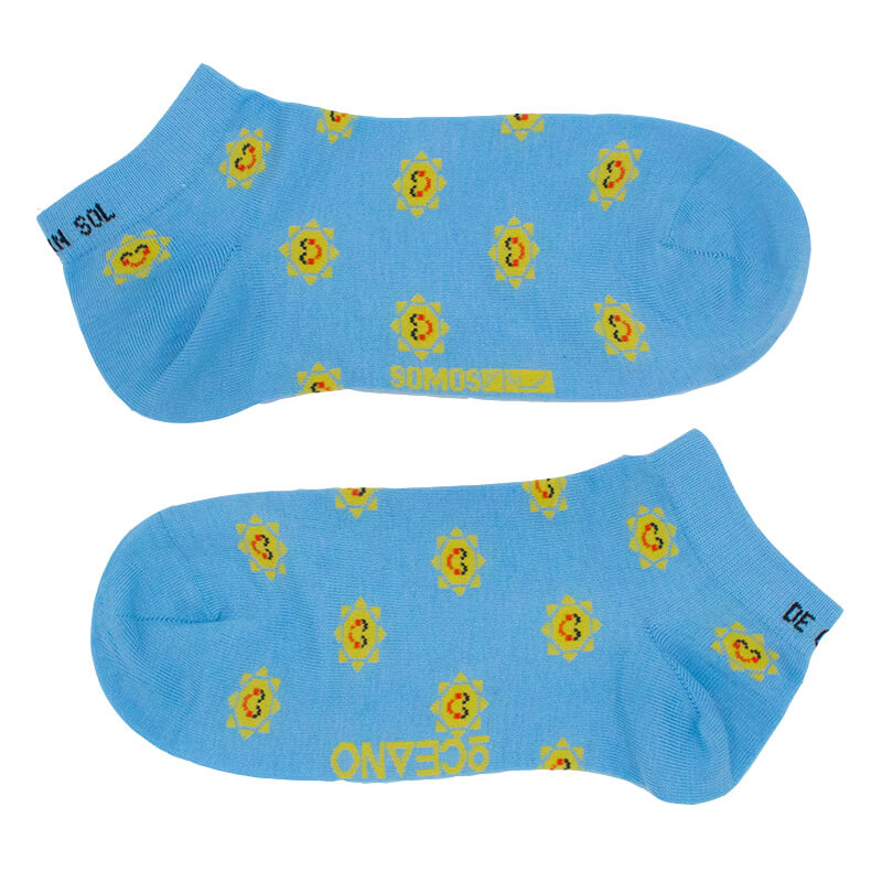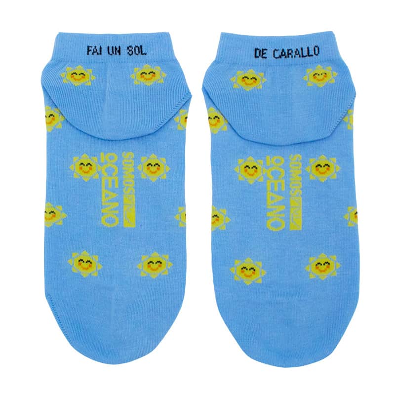 Los calcetines tobilleros Sol guardan un pequeño secreto: en las cenefas se puede leer la frase «Fai un sol de carallo» ¿Os acordáis de la conocida canción del grupo Os Resentidos? ¡Pues eso!