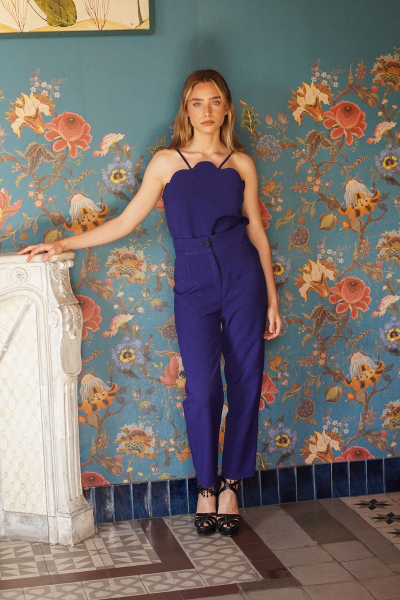 Top con detalle de ondas en el escote. Tirantes y cremallera oculta en costura.