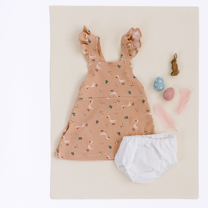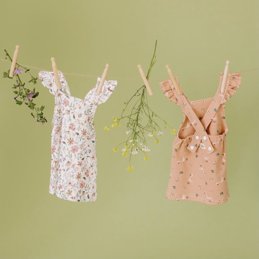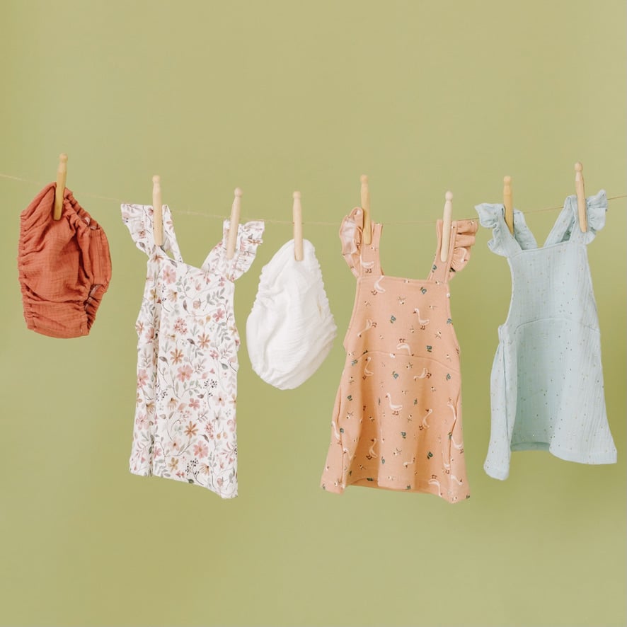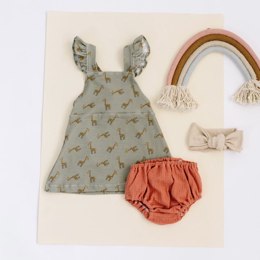 - Todos los vestidos están confeccionados a mano con punto elástico (95% de algodón y 5% de elastán) o gasa de muselina (100% algodón). Todos los tejidos tienen el certificado OEKO-TEX® Standard 100.