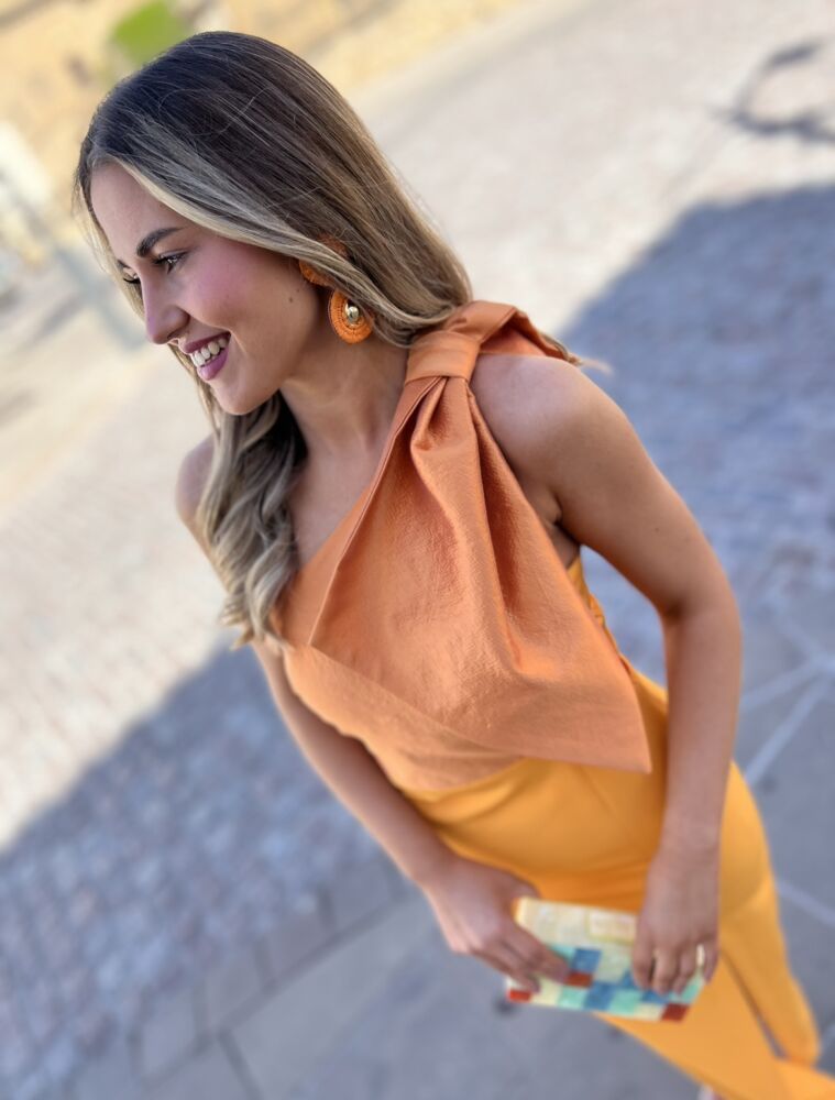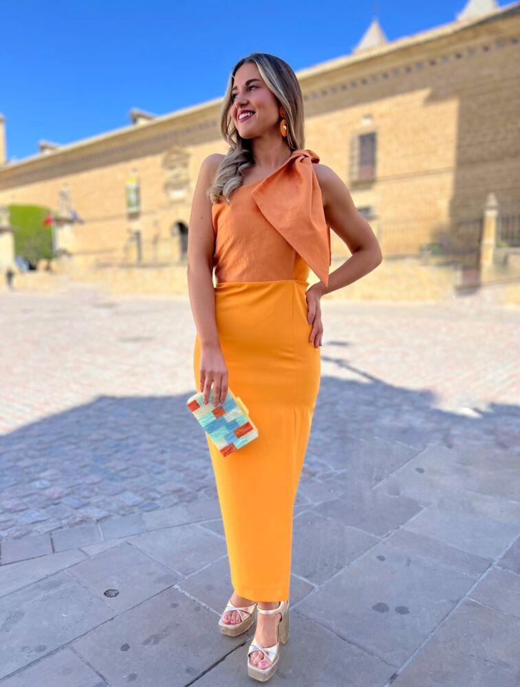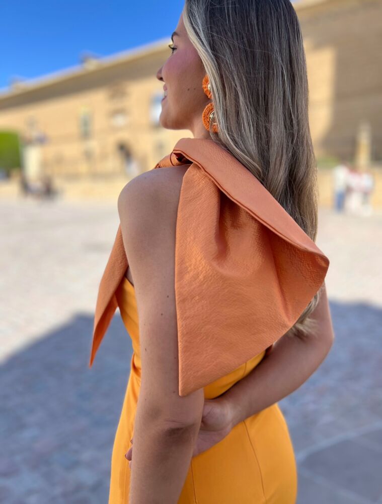 Vestido midi en tejido crepe bioelástico forrado al tono. El toque de distinción lo marca el color azul tan especial que tiene y el lazo en tejido tafetán en hombro. La raja lateralizada de la falda lo hace súper femenino y original para arrasar como invitada perfecta.