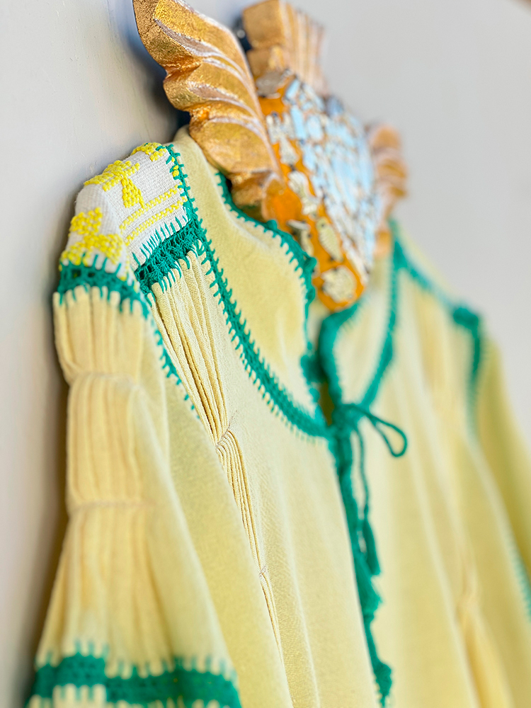 Elaborado en algodón natural con uniones en crochet. Hecho a mano por Artesanas Oaxaqueñas. Talla L