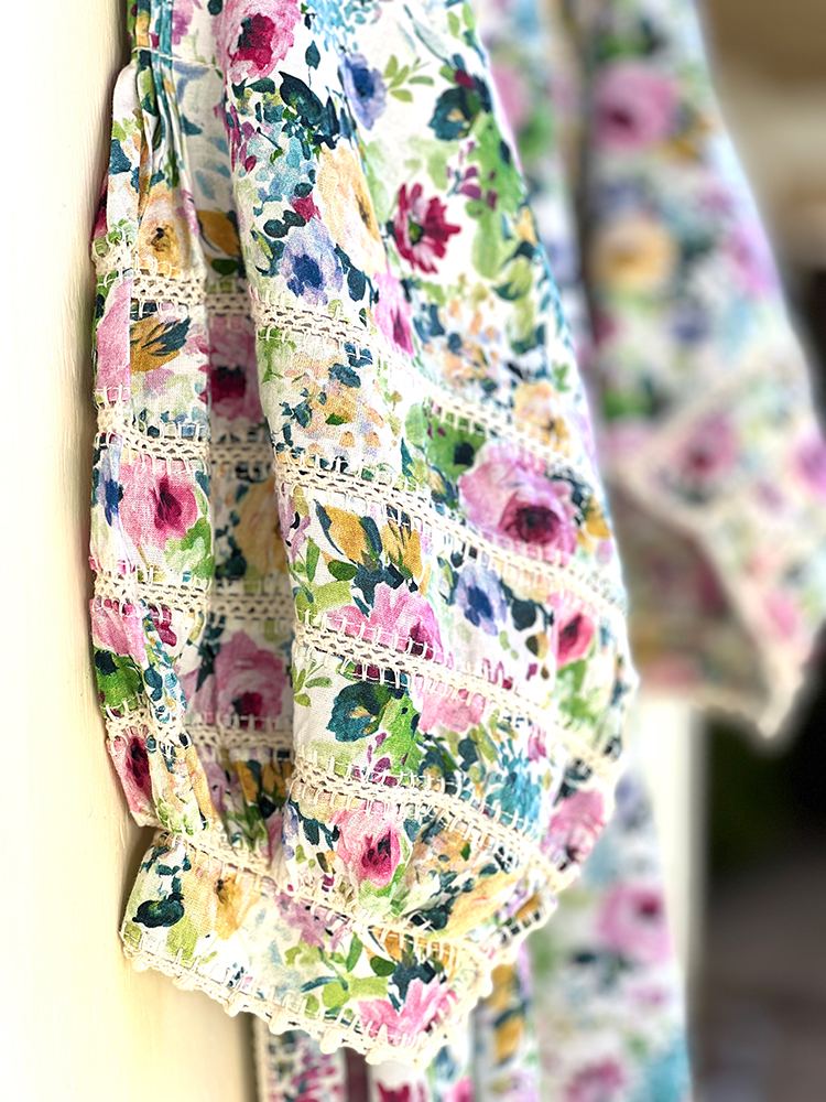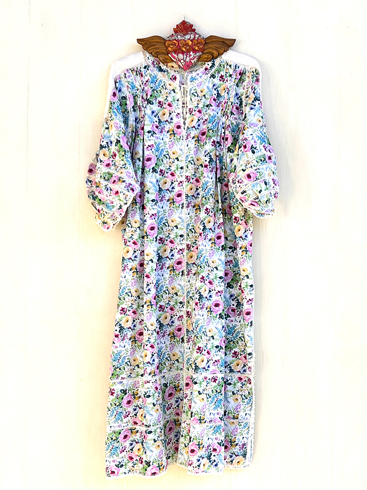 Flores y más flores! Tela de algodón estampado con uniones en crochet . Hecha a mano por Artesanas Oaxaqueñas. Talla única.