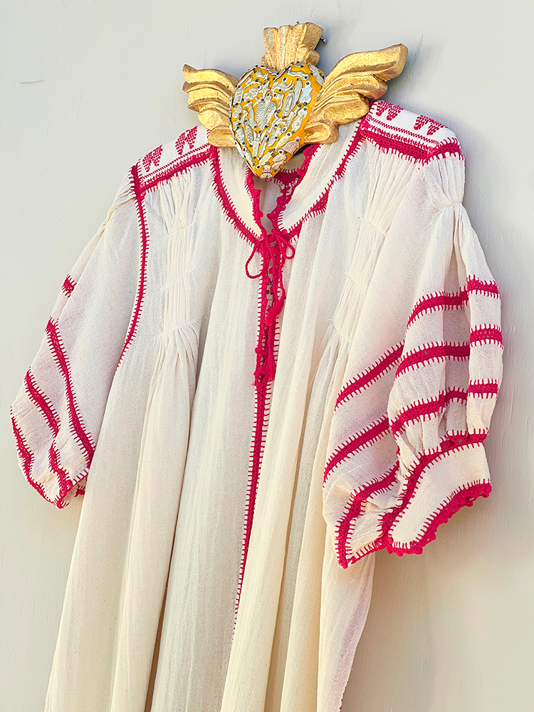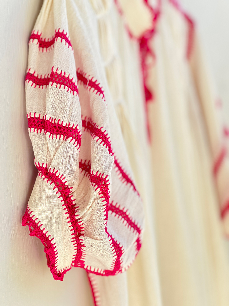 Nuevo en la familia Roberta. Tela de algodón natural con las uniones en crochet hecho a mano. Talla única.