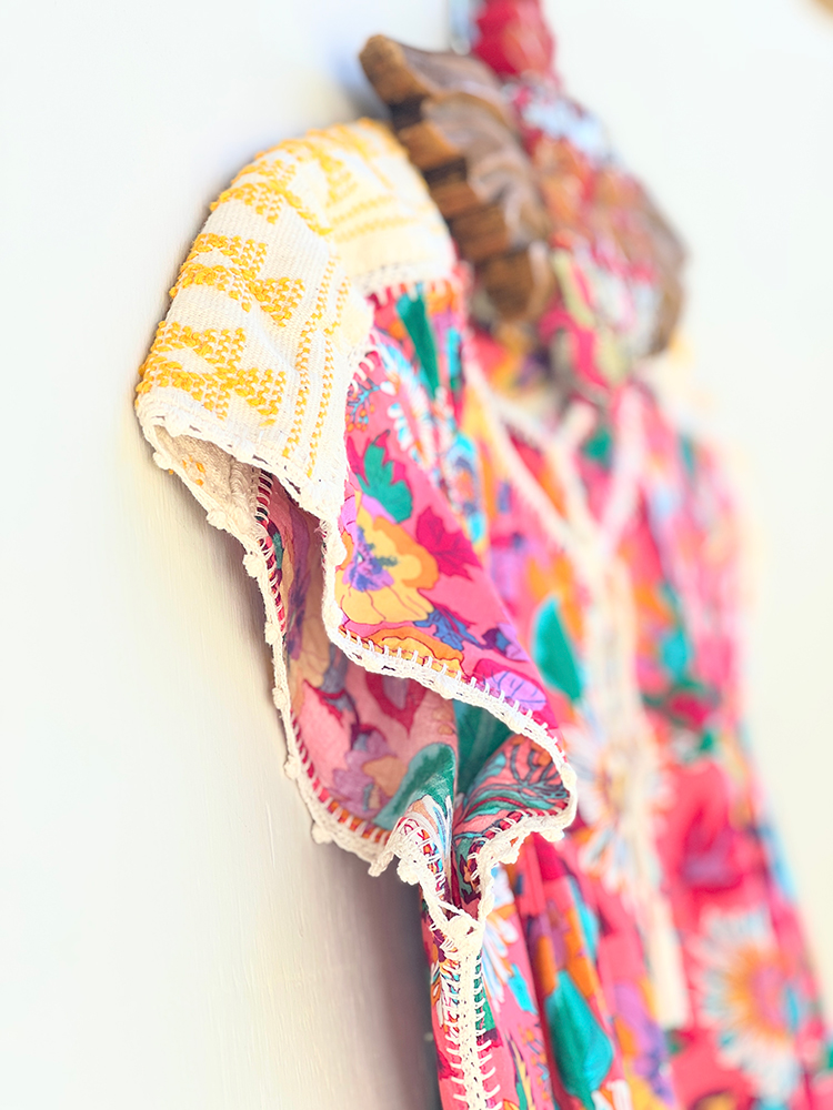 No hay verano sin flores! Confeccionado en algodón con uniones en crochet hechas a mano y detalles en hombros en telar de cintura. Talla única.